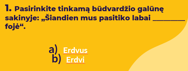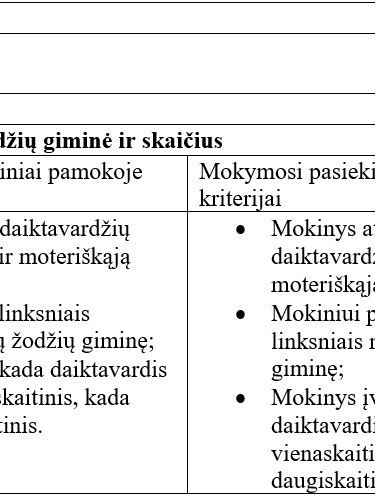 Žodžiu paskelbiamas temos pavadinimas „daiktavardžio giminė ir skaičius“