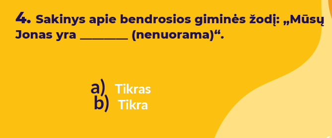 3 daiktavardžiai, kurių giminę nustatyti buvo lengviausia.